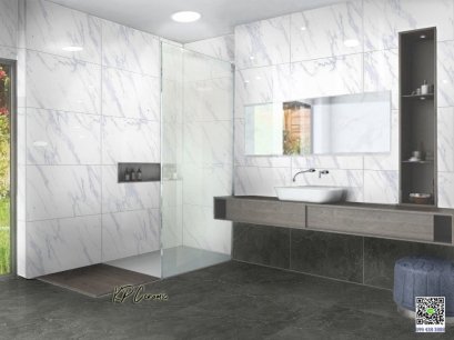 กระเบื้องแกรนิตโต้ ขนาด 60x120cm. Royal Statuario เป็นลายหินอ่อนเส้นคมชัด แรนด้อม 6 ลาย แพ็คต่อกล. 2แผ่น หรือ 1.44ตรม.
