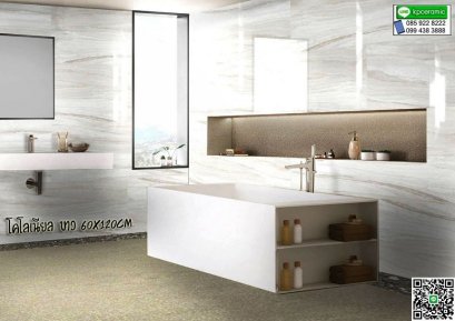 กระเบื้องแกรนิตโต้ ขนาด 60x120cm. #เบลล่า ไวท์ สีขาวพริ้วสวย สวยซอฟสบายตา แพ็คต่อกล. 2แผ่น หรือ 1.44ตรม.