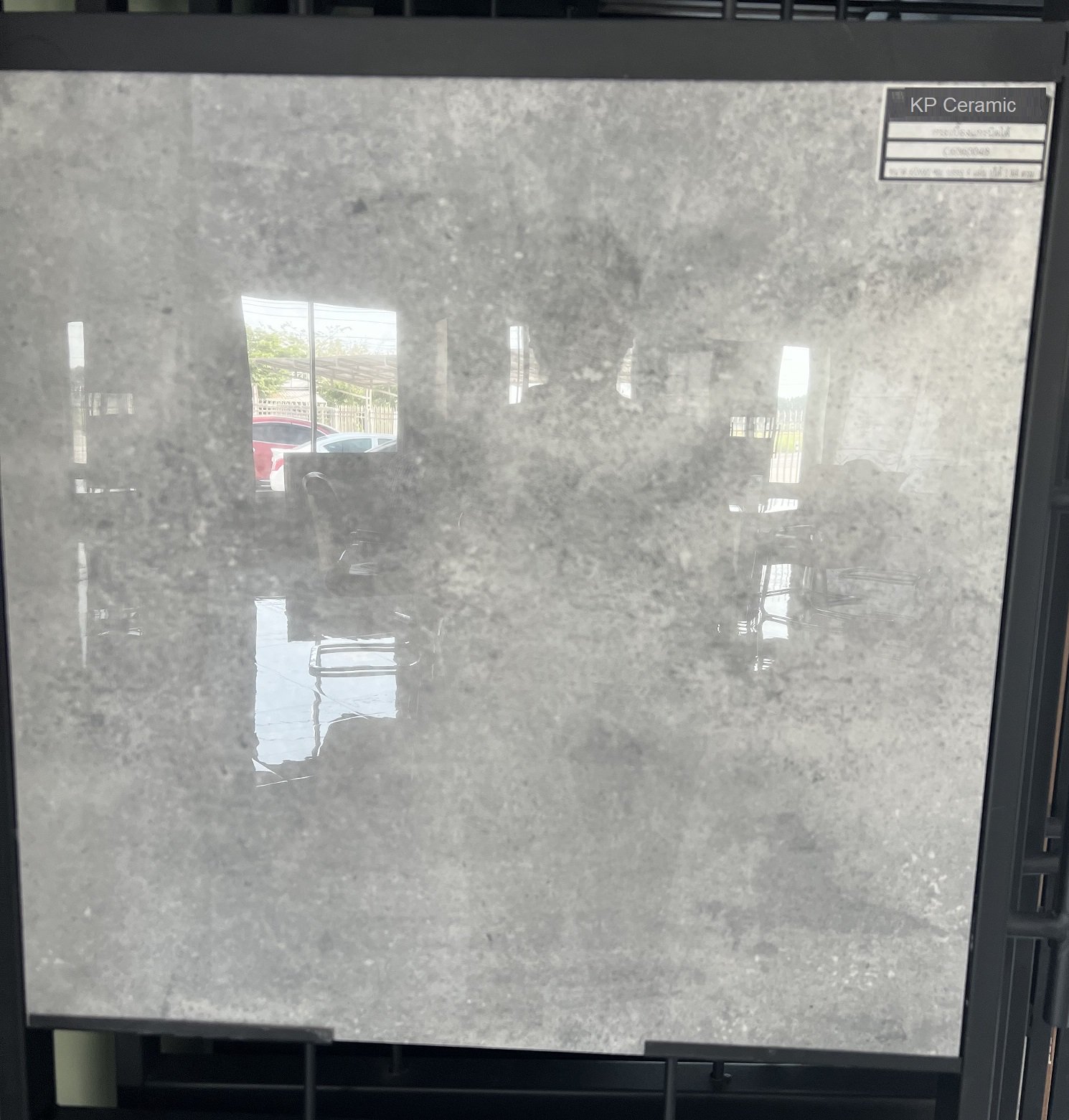 กระเบื้องสีซีเมนต์ผิวเงา 60x60cm. กระเบื้องสีเทาผิวเงา กระเบื้องสีเทาคลาสสิค ผิวเงา