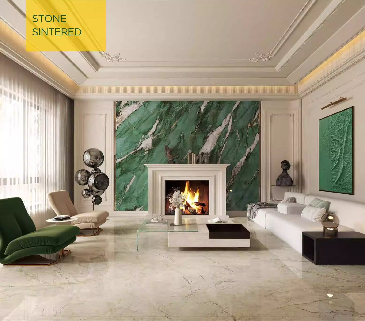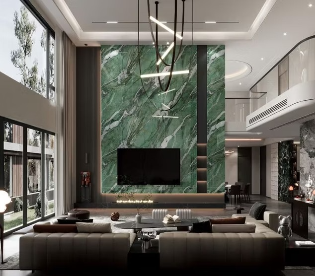 กระเบื้องลายหินอ่อน สีเขียว 160x320x1.2cm. ผิวเงา